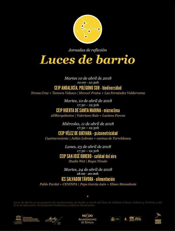 LUCES DE BARRIO 2017 es un proyecto del Ayuntamiento de Sevilla a través del Área de Hábitat Urbano, Cultura y Turismo y del Área de Educación, Participación Ciudadana y Edificios Municipales.